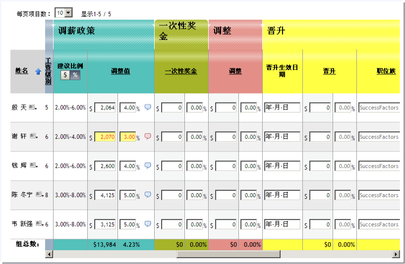 (3)合理调薪:根据薪酬等级、绩效等级、薪酬比较比率以及个人的薪酬在薪酬范围中的水平等指导性数据,综合多种因素来进行更客观的薪资调整。