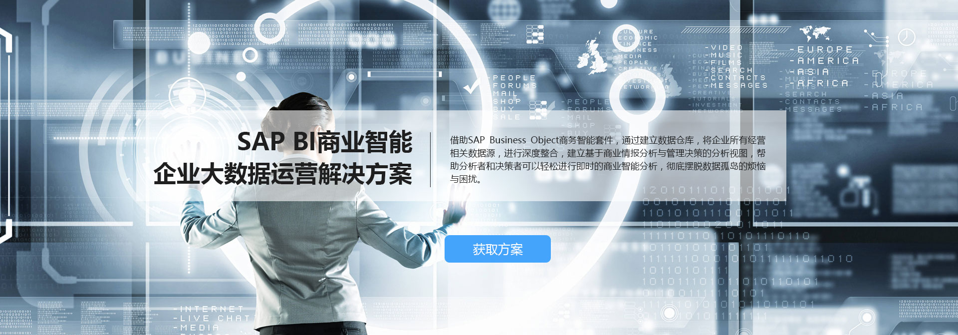 通过SAP BI商业智能平台,可以整合Oracle,DB2,SQLServer,MySQL,Informix,XMl等40余种数据源,建立数据仓库;